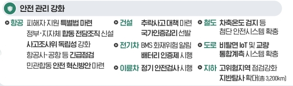 항공 안전뿐만 아니라 국토교통 전반에 걸쳐 안전관리를 강화하는 것이 이번 정부의 또 다른 주요 과제입니다.