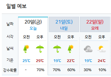 비는 오늘부터 시작되어 모레까지 지속될 예정입니다. 이번 비는 마치 여름철 장마처럼 많은 양이 내릴 것으로 예보되어 있습니다. 북쪽에서 내려오는 찬 공기와 남쪽의 따뜻한 공기가 충돌하면서 형성된 정체전선이 강한 비구름을 만들고 있는데요, 이로 인해 강한 집중호우가 예상됩니다.