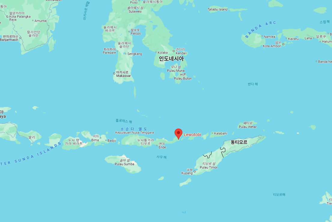 레워토비 화산은 인도네시아 동부 플로레스 섬에 위치한 쌍봉 화산으로, 라키-라키(남성)와 페렘푸안(여성)이라는 두 개의 화구를 가지고 있습니다. 높이는 약 1,584미터(5,197피트)이며, '불의 고리(Ring of Fire)'라 불리는 태평양 화산대에 속해 있어 지진과 화산 활동이 매우 활발한 지역입니다.