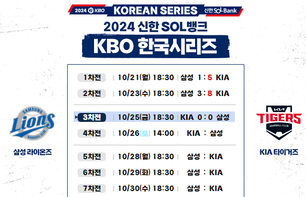 2024 한국시리즈 3차전: 삼성 라이온즈 vs. KIA 타이거즈 - 대구에서 펼쳐질 운명의 승부