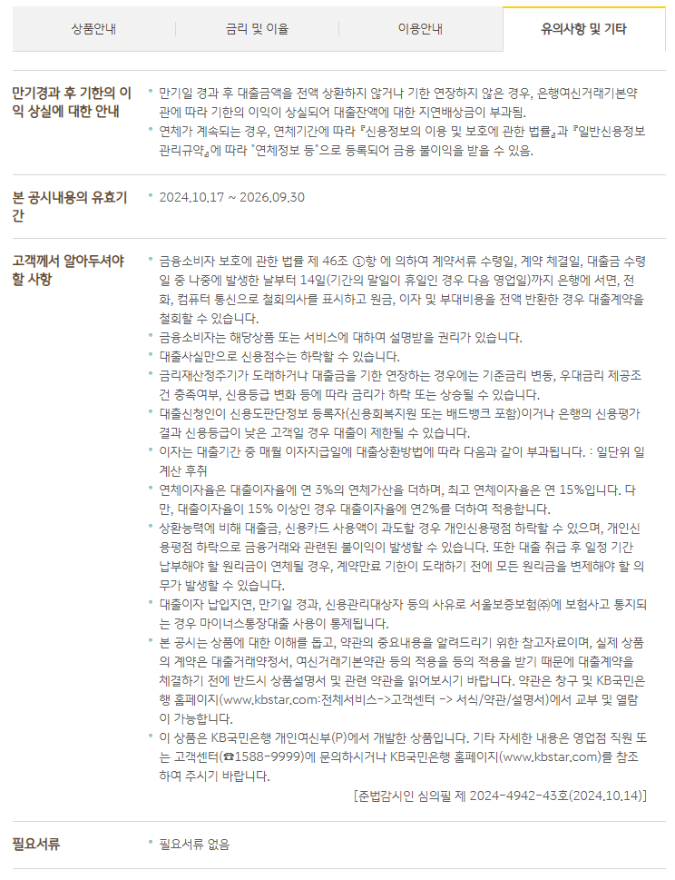 - 상환 계획: 정해진 상환 기간 내에 대출금을 갚지 않으면 연체 이자가 발생할 수 있으니, 자신의 상환 능력을 고려하여 대출을 이용해야 합니다.