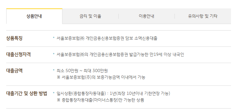 - 대출 한도: 최소 50만 원부터 시작해서 최대 300만 원까지 신청할 수 있습니다.