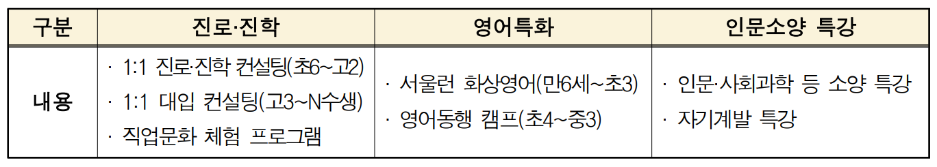 다. 특화콘텐츠 : 다양한 서울런 특화콘텐츠 제공을 통한 온라인 교육 보완
