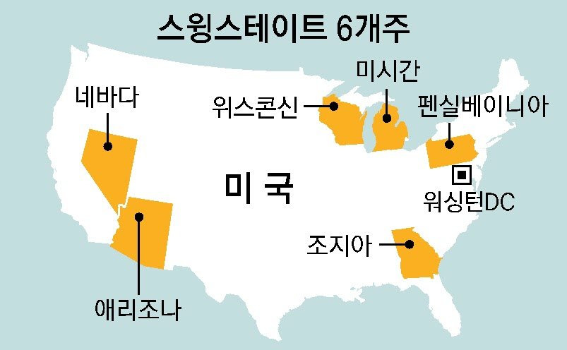 미국 대선은 경합주 결과에 따라 큰 영향을 받습니다. 이번에도 주요 경합주로는 애리조나, 조지아, 미시간, 네바다, 노스캐롤라이나, 펜실베이니아, 위스콘신이 꼽히고 있습니다. 이들 주는 선거 결과를 결정짓는 데 큰 역할을 하며, 각 주의 개표 속도와 결과가 발표 시점에 영향을 미칠 수 있습니다.